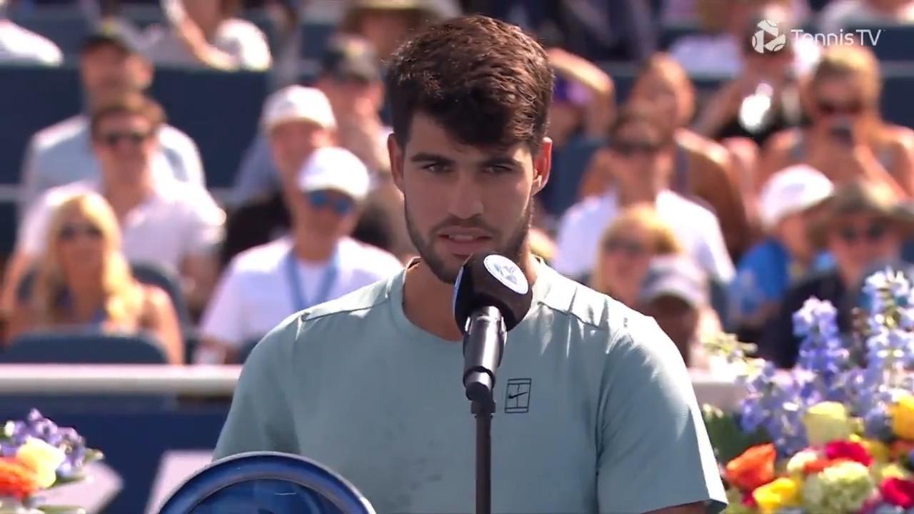 在夺得辛辛那提大师赛冠军之后,阿尔卡拉斯向现场观众发表了讲话。